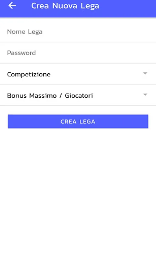 To create a league, choose an available name, a password and the type of competition for which you want to make predictions (Serie A, Champions' League, etc.). Then invite your friends by selecting the appropriate section and entering their email, to which they will receive the details to join the League you created.