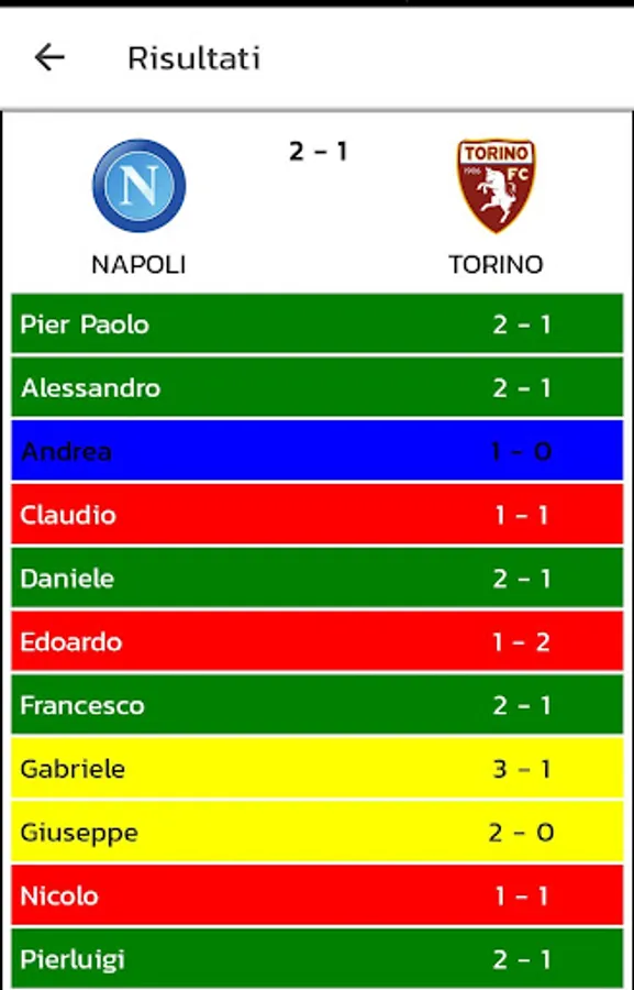 In the specific case, Marco, who had guessed the prediction by hitting the same goal difference (one goal), earns 2 points + 1 bonus, while Luca who guessed the prediction, gains 1 point + 1 bonus point.