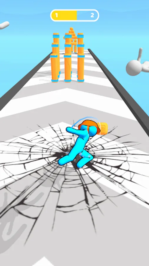 We start by holding the screen and setting the direction and speed to go. You have to hit the obstacles and knock them down with the helmet on your head. But our real target is our enemies! After aiming correctly and adjusting your speed, you must fall towards the enemies and destroy them. The more enemies you destroy, the more you grow and become stronger. Destroy all the enemies along the way and reach the finish!
