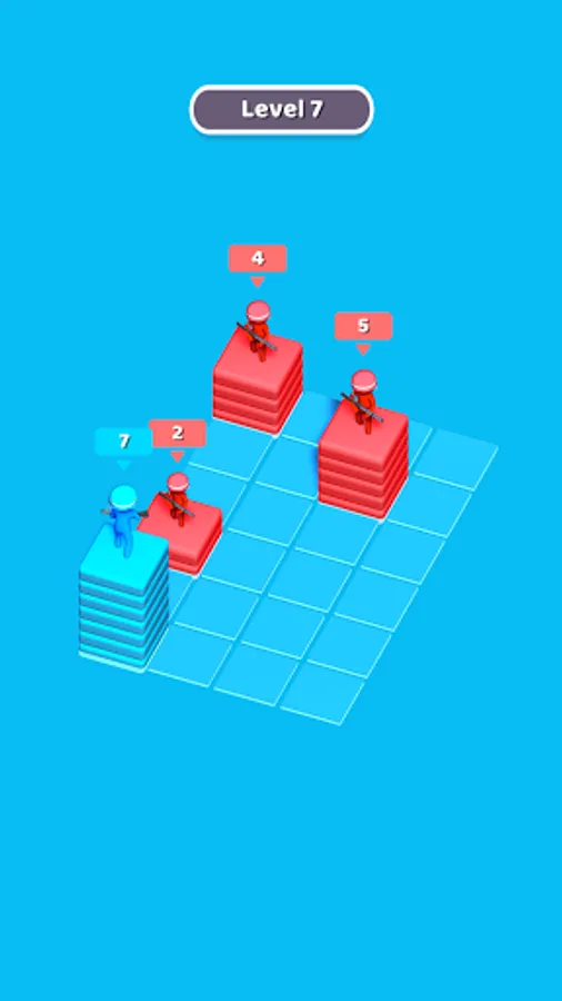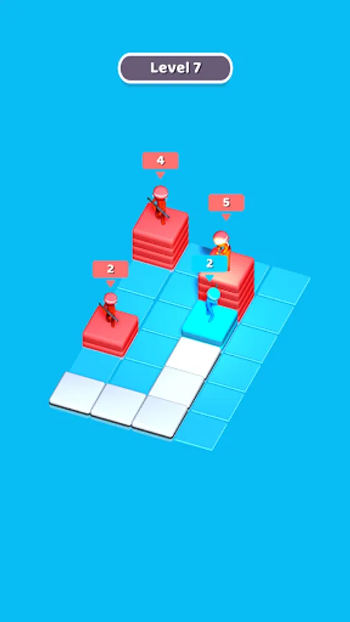 Your enemies will likewise be waiting for you! It says how many earrings you have on you and your enemies. Each time you advance, you're missing a cube. You have to move towards the enemy you want to go by holding down on our character on the screen. Be careful! Multiple enemies mean losing more cubes. Find the shortest path and defeat them all.