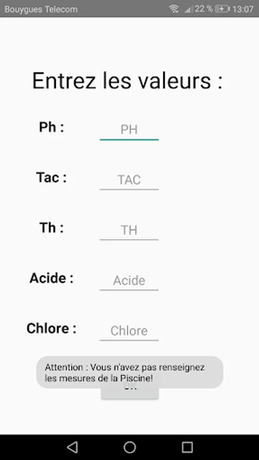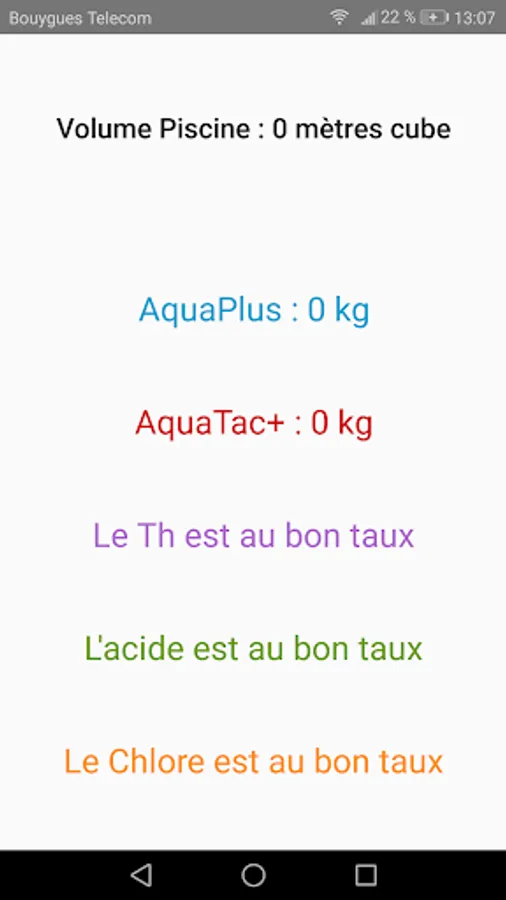 Calculation of mass products to add to the pool according to the values (Ph, Tac, Th, acidity, chlorine)