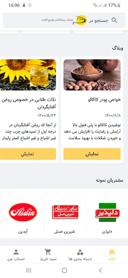 Due to the design and construction of smart phones and its prevalence, as well as easier access to the Internet and cyberspace without the need for a computer, the production of mobile applications, especially the Android version, has flourished. Due to the fact that technology has become very popular in the field of business today, Pishgaman Aftab Distribution Company for the comfort of its customers after working on the web, buying products of Nazgol brand, Altin Marka, etc. in the Android application for its companions Has made it possible. So you can download and install the software through the Bazaar Cafe, Play Store or scan the QR code inserted in the website, at any time to register your order with your mobile phone.