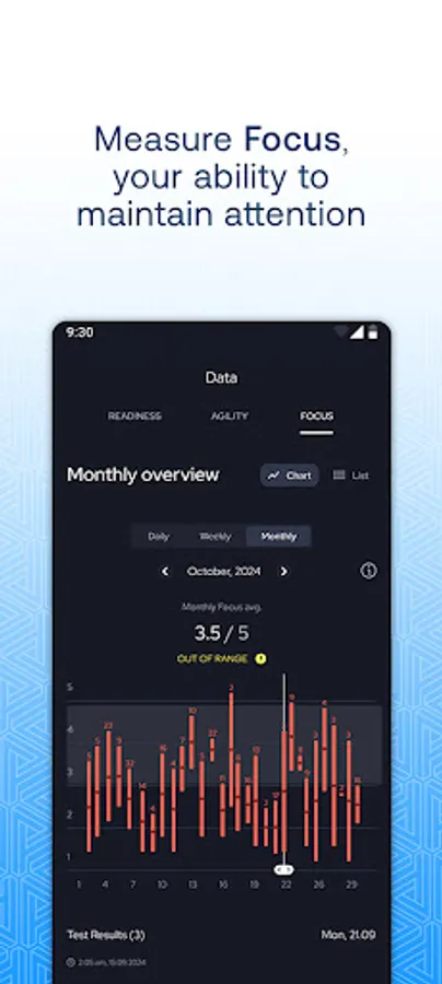 - Readiness - A real-time indication of your ability to mentally perform. It can reveal impairment from fatigue, head injury, diet and disease.