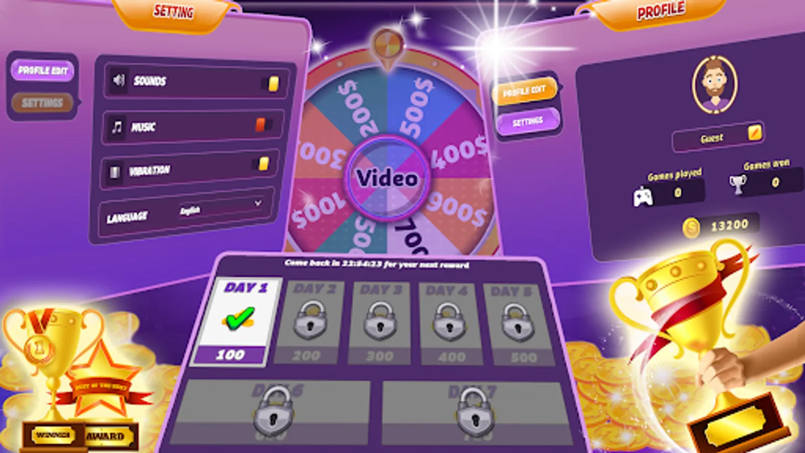 - Lucky Wheel: Try your luck to win upto 1500 coins.