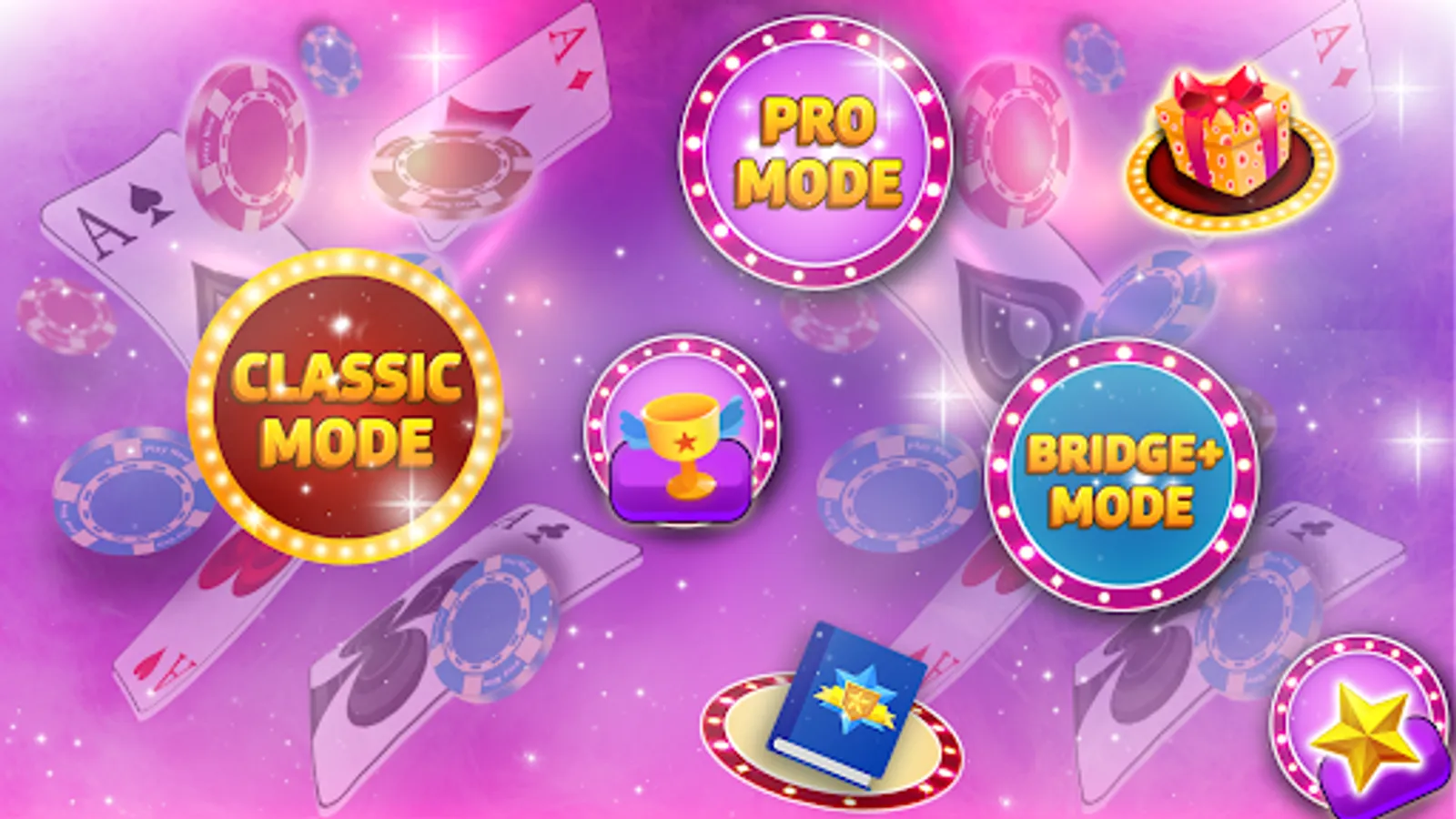 - Themes: 5+ card face to select from, 40+ card shirts/backs to select from and more than 5+ game backgrounds to select from.