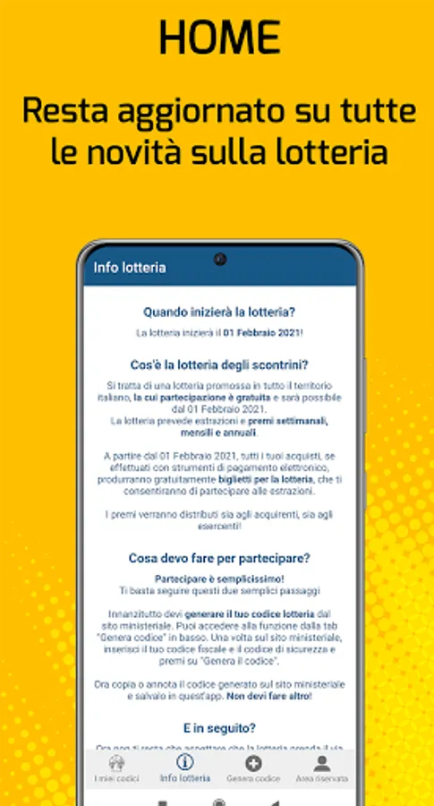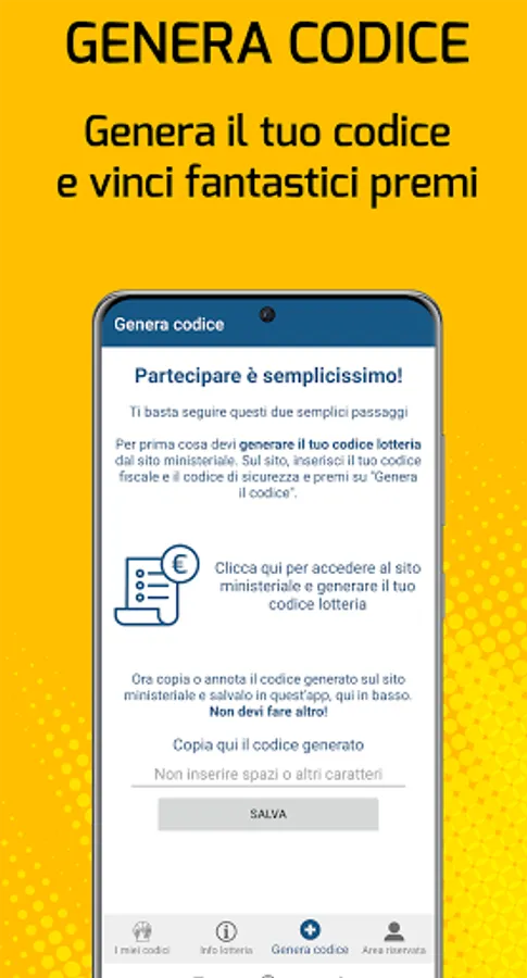 The receipt lottery costs you nothing because it is linked to your normal purchases. Participating is easy: just download this app, generate the lottery code via the ministerial website, and show it to the merchant at the time of purchase.