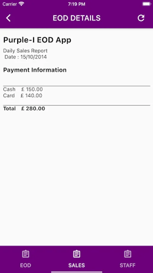 EODApp is End of Day sales reporting App for Restaurant Business.