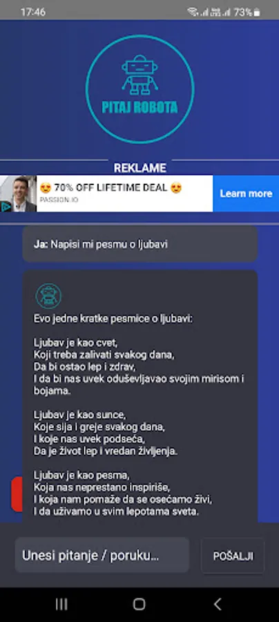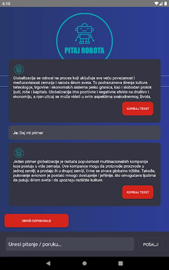 Ask Robot is an AI-powered chatbot designed to provide engaging and intelligent conversations. Our advanced AI technology understands and responds to your questions and comments with incredible accuracy, providing an interactive, educational and fun experience.