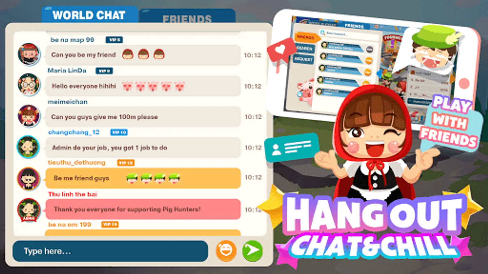 ♠ Robust Social Network: connect your Facebook account to see how many of your friends are already playing our game! Interact with and meet new players on the world chat channel.