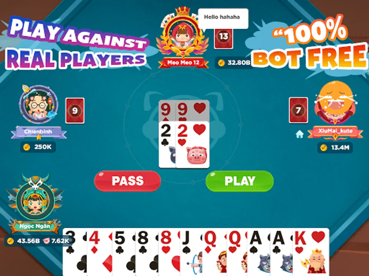 Play and compete against the best players from all over the world. Or invite your friends and family to the tables and finally settle the debate: who really is the best?! Pig Hunters is an online Tien Len Mien Nam (TLMN) / Thirteen game with many outstanding new features: