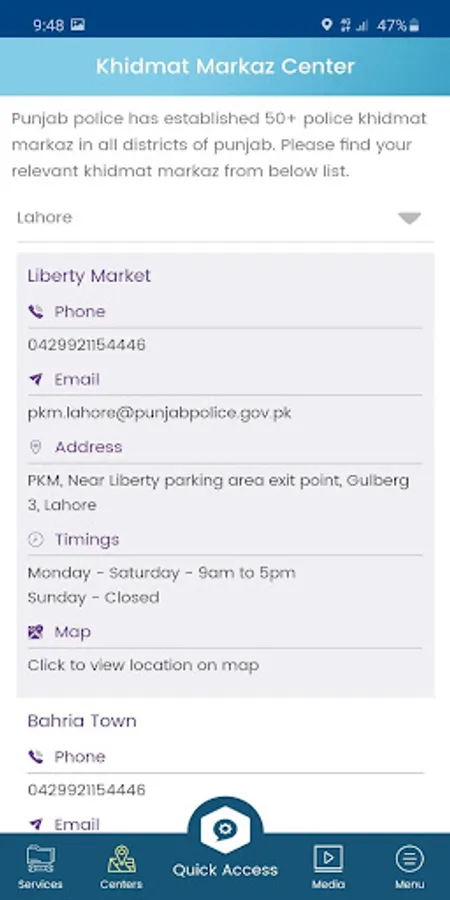 5. Punjab wide Center/Office Locations, timings and contact info.