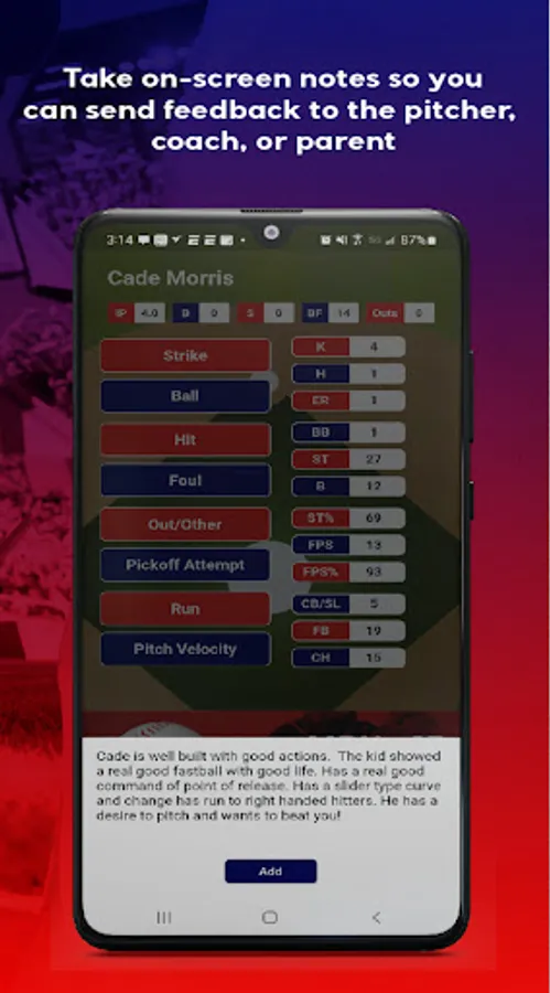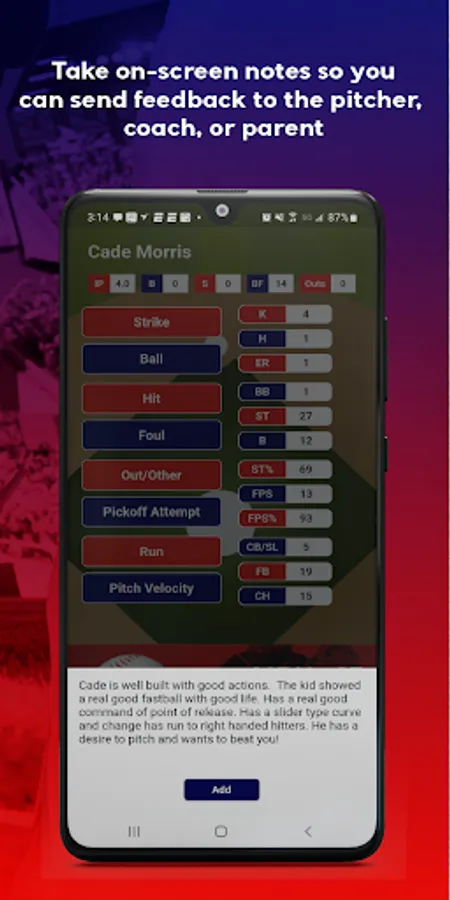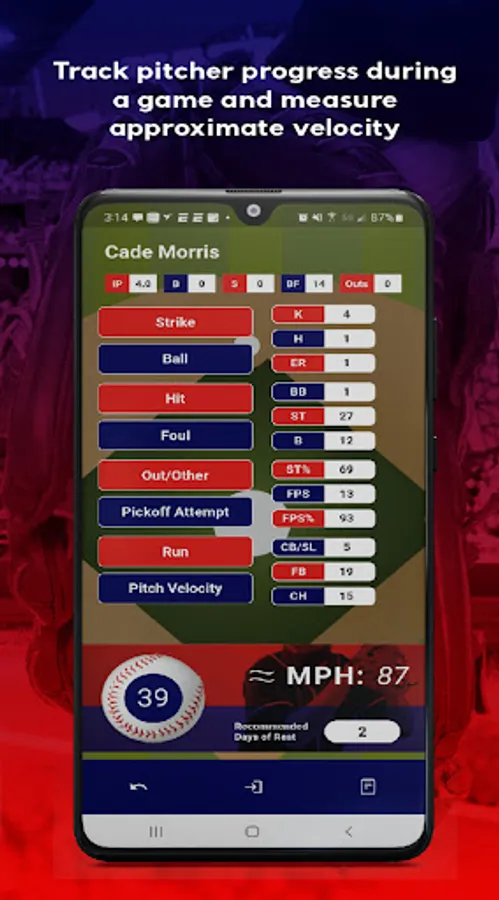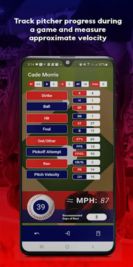 With Track-A-Pitch, you can easily track your pitch count, velocity, and other key statistics, including:
