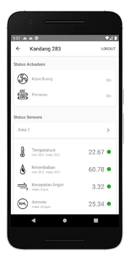 The data collected from the above sensors will be displayed in this app so that farmers can monitor from anywhere. In addition, breeders will also be notified if the conditions of the cage require more attention, for example if the temperature is too high than the tolerable value of the chickens.