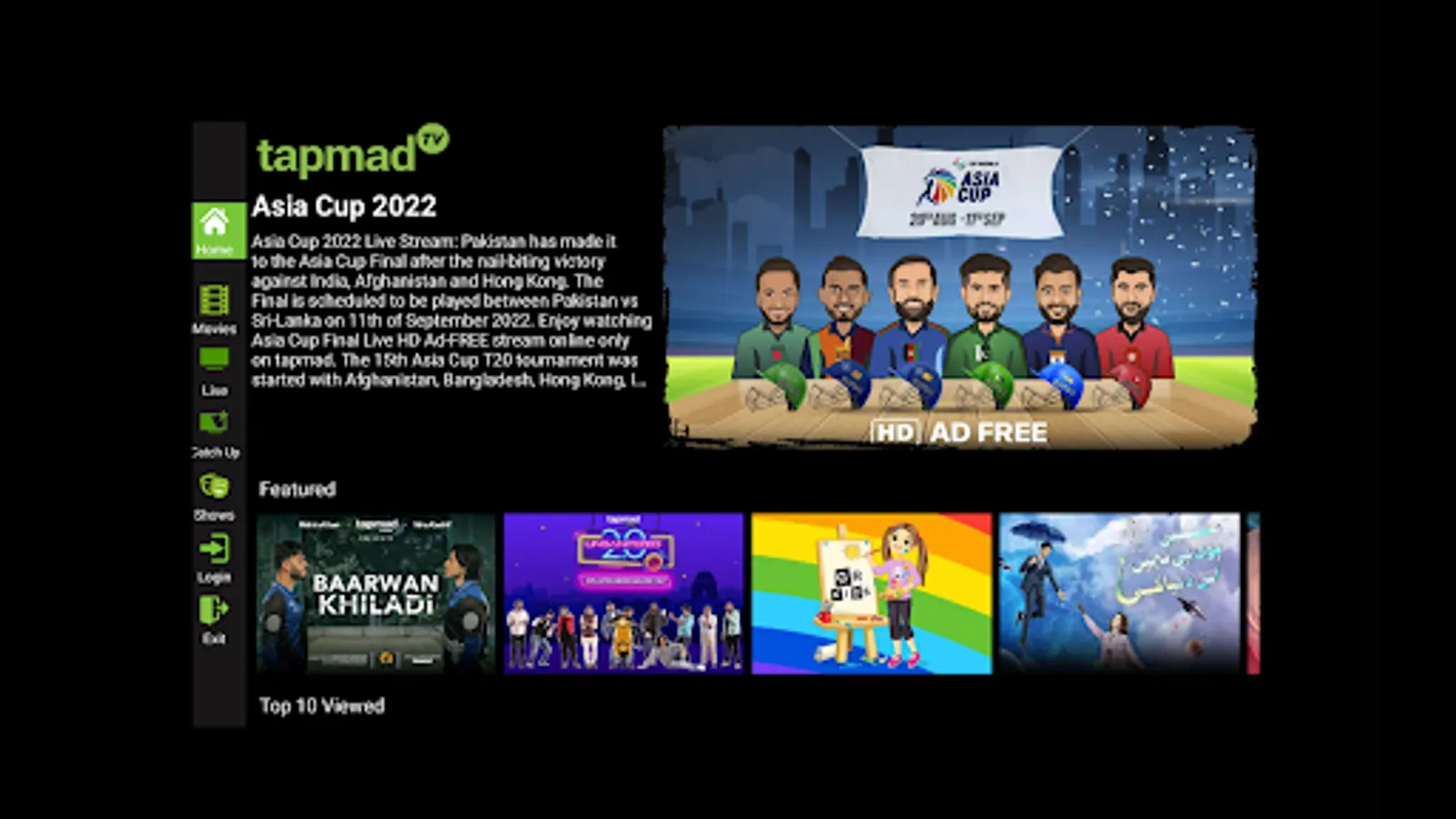 Introducing tapmad – Looking for a clean ad-free stream to watch Live Sports in HD? From all premium sports to entertainment, we’ve got you covered! tapmad gives you access to watch 100+ live HQ Channels - Choose from 1,000s of Dramas, Movies, Music, and much more, anywhere, anytime, on multiple devices!
