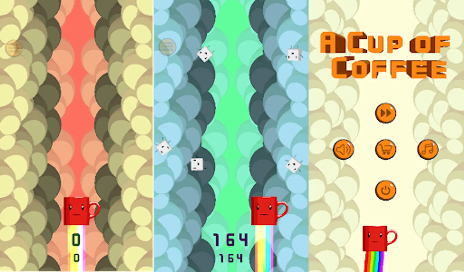 A classic avoid and collect game, where you are a flying cup of coffee.