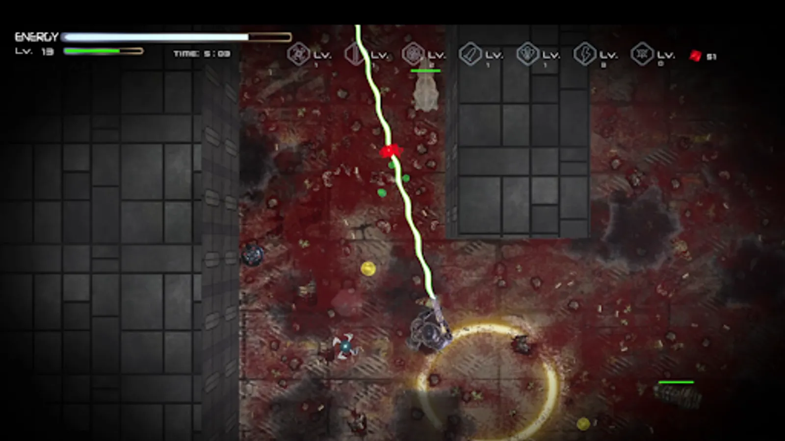 You have your Space Rifle with you, but you can gain experience points from your defeated enemies and buy new power-ups.