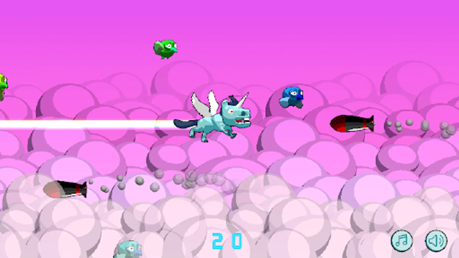 But the humankind won't let this evil unicorn do whatever he wants: they will try to shoot him down with powerful misseles launched from any direction!