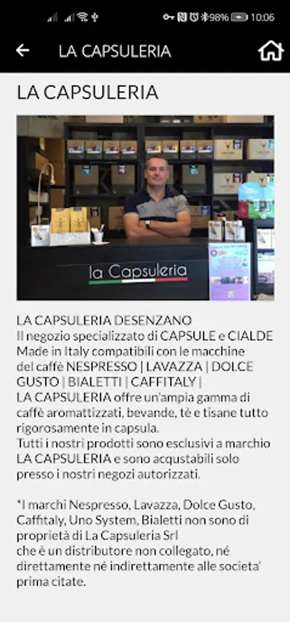 * The Nespresso, Lavazza, Dolce Gusto, Caffitaly, Uno System, Bialetti brands are not owned by La Capsuleria Srl