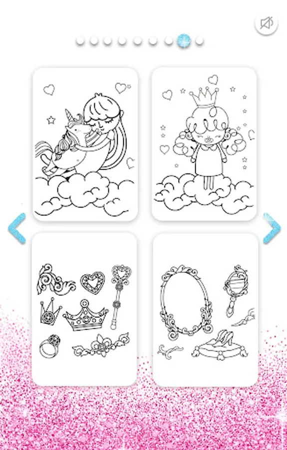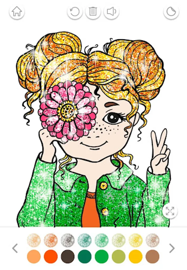 ⭐ You will learn how to use our coloring game very quickly! Girls Coloring Book for Kids Glitter game is very easy to use and absolutely FREE: no paid content, all for FREE!