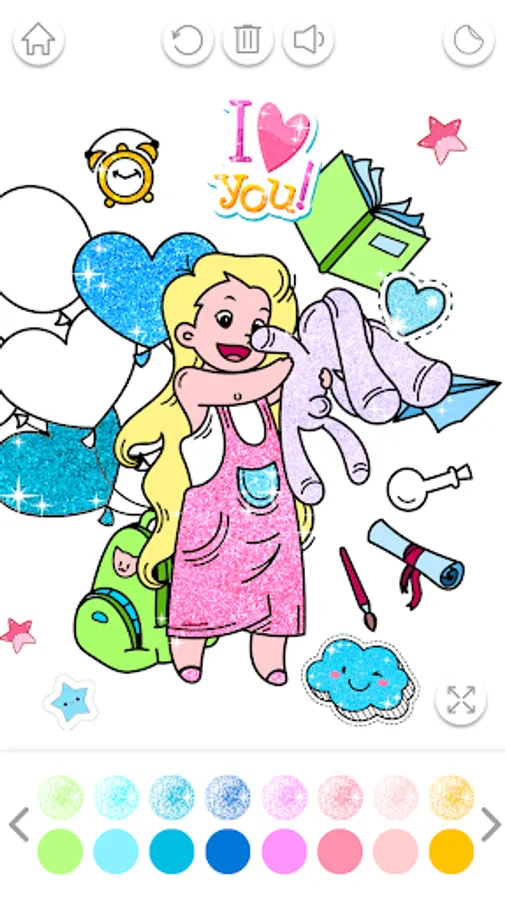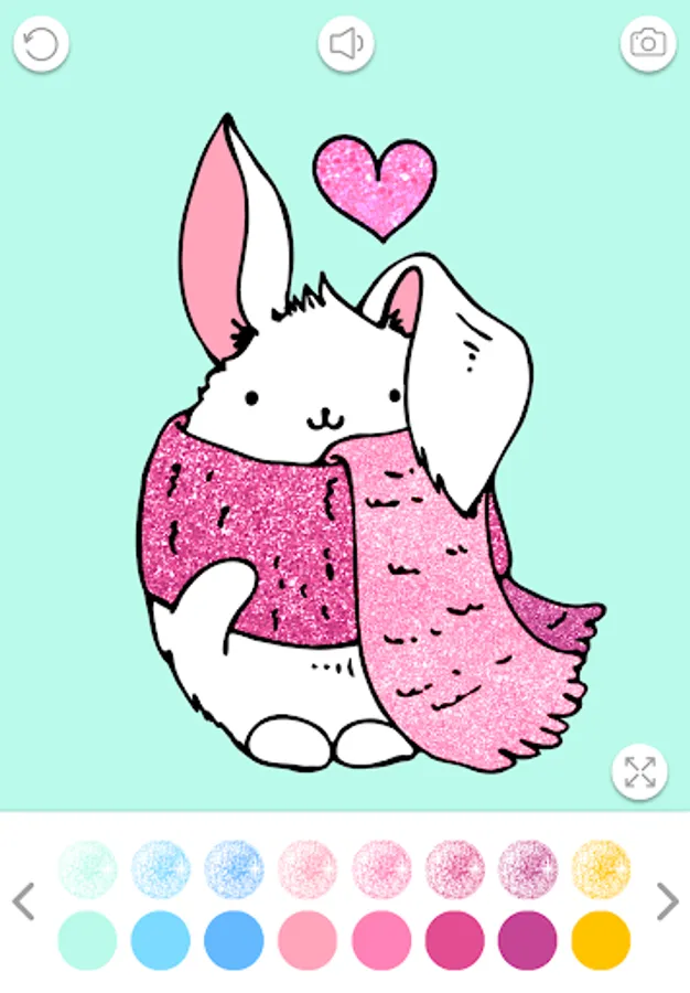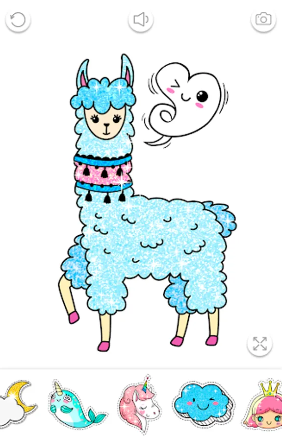 ✔ Open kawaii game and select one kawaii coloring page from "Kawaii Coloring Book Glitter"