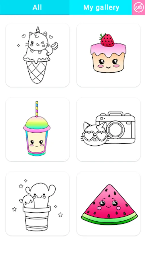 💛Kawaii coloring game contains a lot of beautiful coloring pages! You will find here various kinds: cute animal coloring books for kids, kawaii cats coloring pages, funny food coloring pages and other pictures for color gradient!