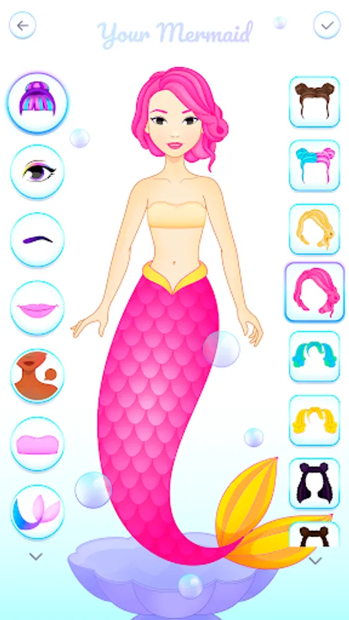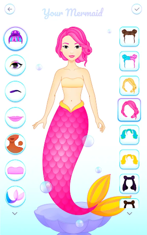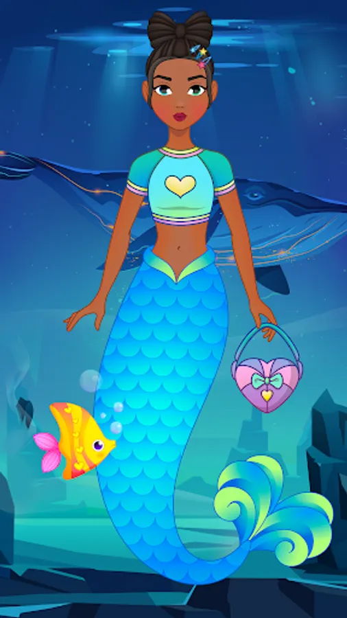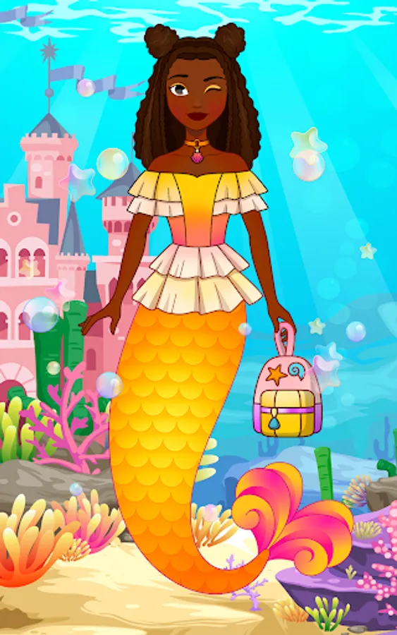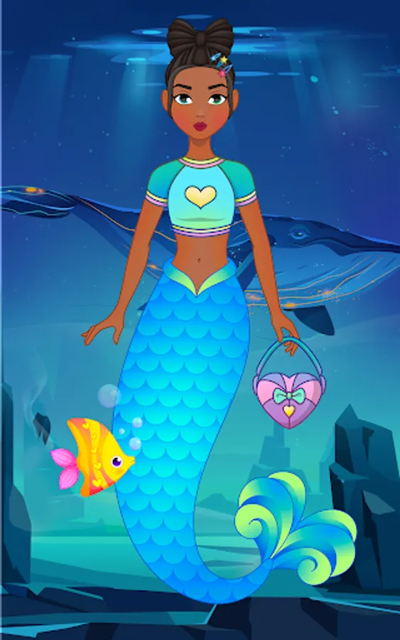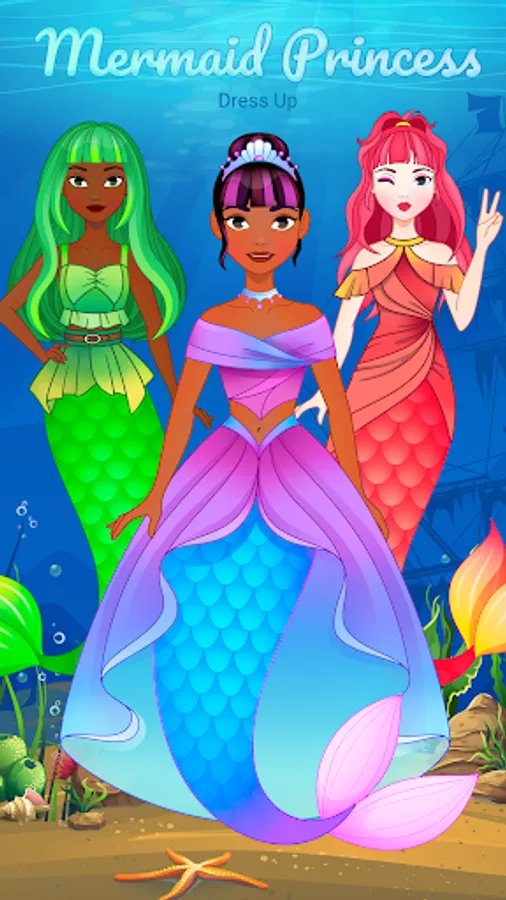 Install the application Mermaid Princess Dress Up, create outfits, combine them with locations, make your own stories in the ocean, and enjoy with our game!