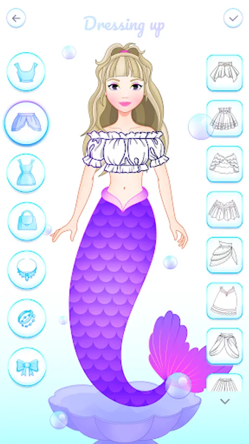 -Dressing up your mermaid with many clothing items. Make her individual.
