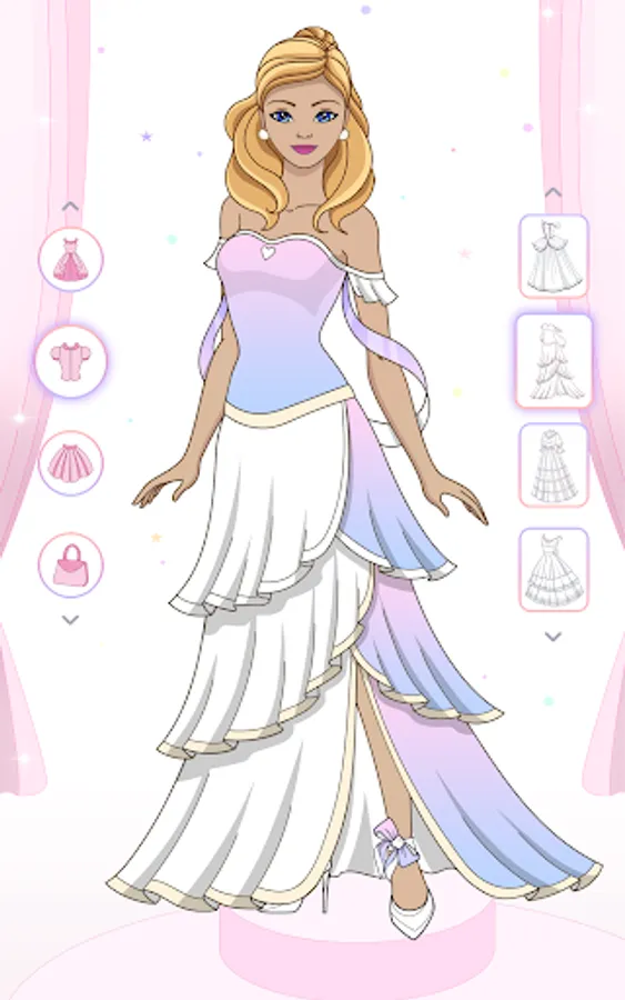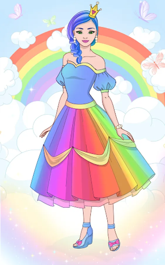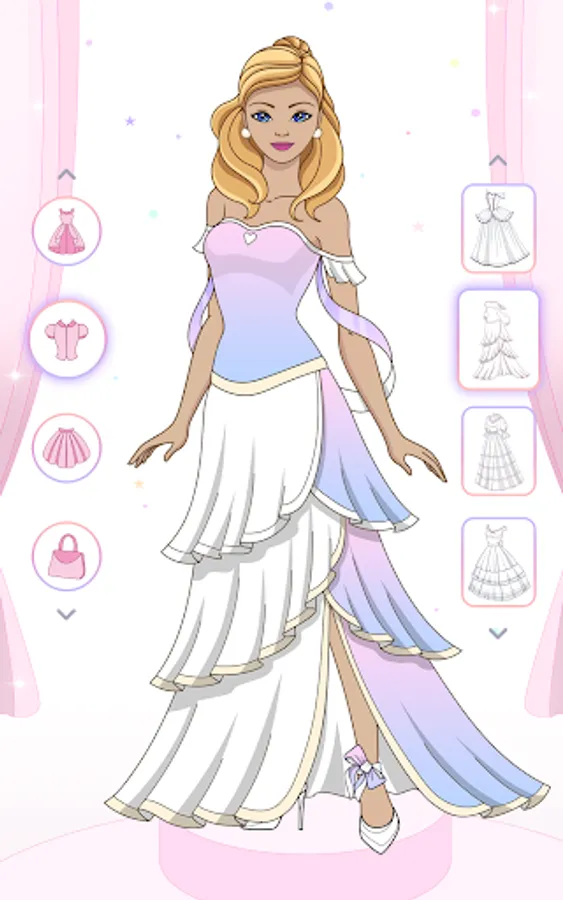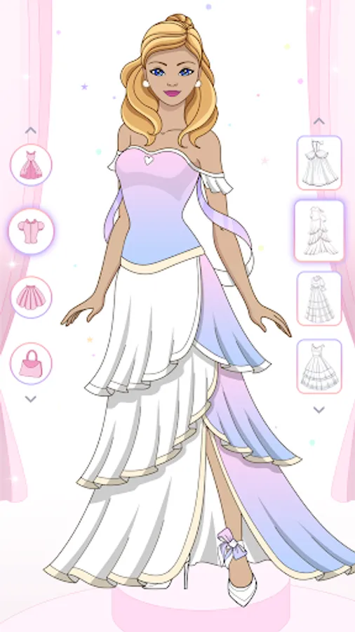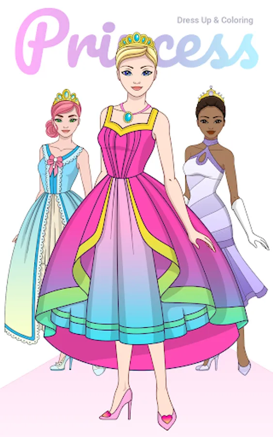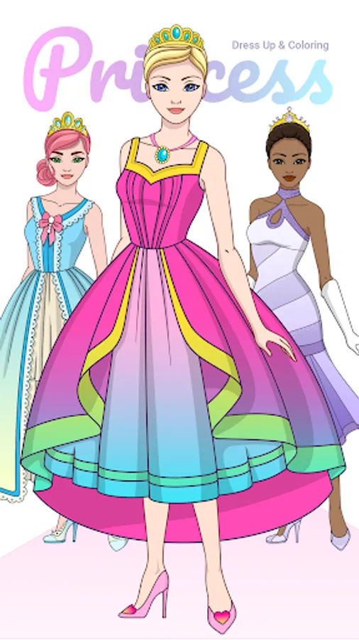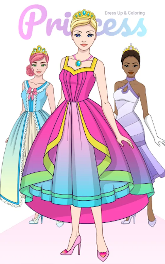Our app Princess Dress Up & Coloring is a cool game, where you can create a unique princess image. If you like to pick up clothes and want to make it, then download our game Princess Dress Up & Coloring.