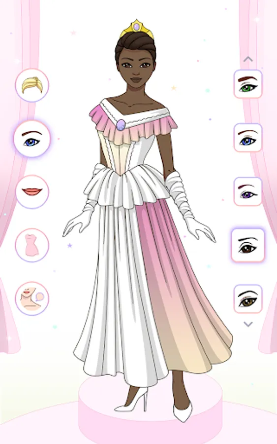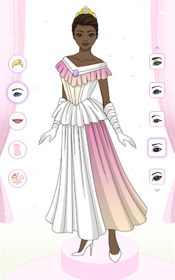 Immerse yourself in the magic world of tales and princesses in our app Princess Dress Up & Coloring. Create unique clothing items, make up your own dresses and match them on different backgrounds with our game Princess Dress Up & Coloring