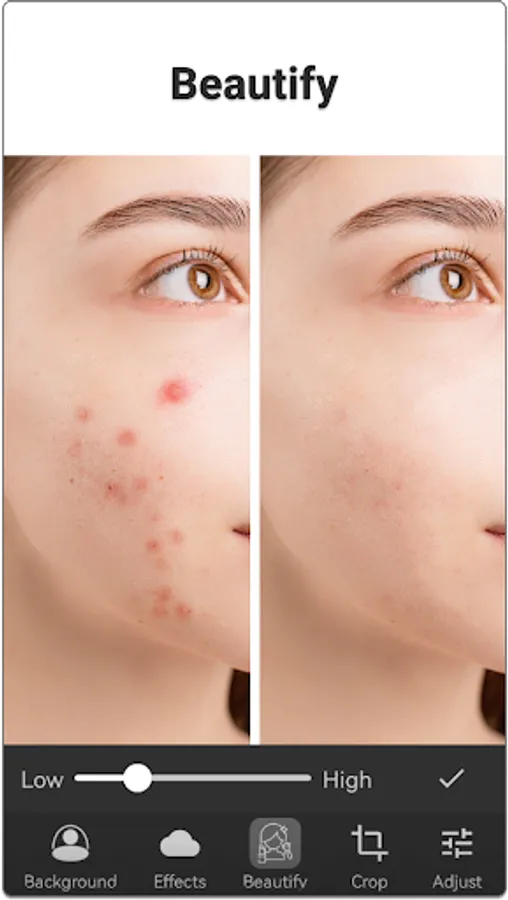 - Beautify: Enhance your photos with the built-in beautify feature, including editing tools for brightness, contrast, saturation, and more.