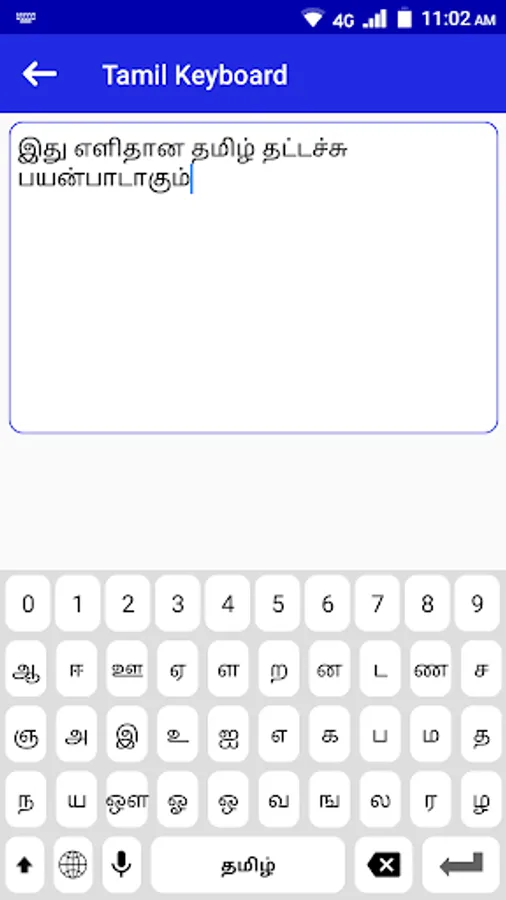 The keyboard can be set as default keyboard and you can type all Tamil letters and Tamil characters. Moreover the app also have a world icon to toggle to other languages quickly so that you can toggle your favorite languages with comfort.