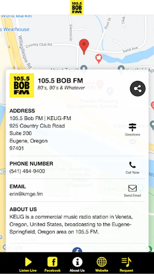 KEUG is a commercial music radio station in Veneta, Oregon, United States, broadcasting to the Eugene-Springfield, Oregon area on 105.5 FM.