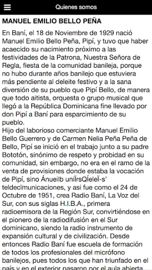 RadioBani.com y Christian Baez nos enorgullece rendir homenaje a quien fuese la emisora principal de nuestro pueblo y la primera del sur del país. Radio Bani (La Voz del Sur) con las siglas (H.I.B.A) Fundada el 24 de Octubre de 1951 por Manuel Emilio Bello (PIPI)