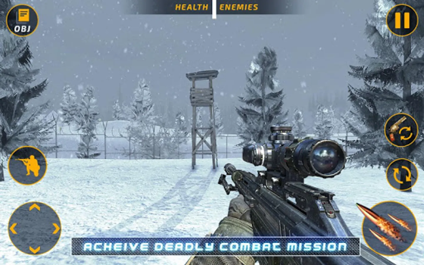 Take an active part in improving your fighting in combat army game skills with different sniper gun weapon in an unknown fun arena of winter. Play without stopping in this top best fps game of 2018 until all enemies are strike out of game. You must upgrade radar map and health to become stronger in this gun game to cross fence border.