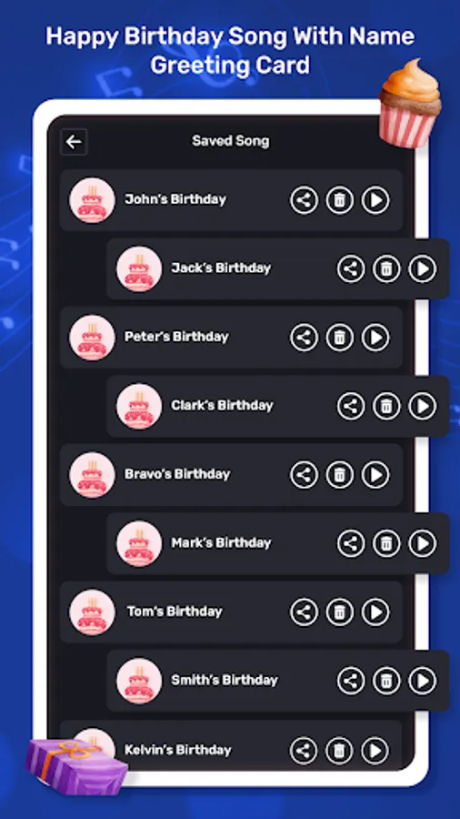 Happy Birthday song Maker with you can create song for birthday wishes in song mode this will make special from your side for wishing him/her happy birthday.