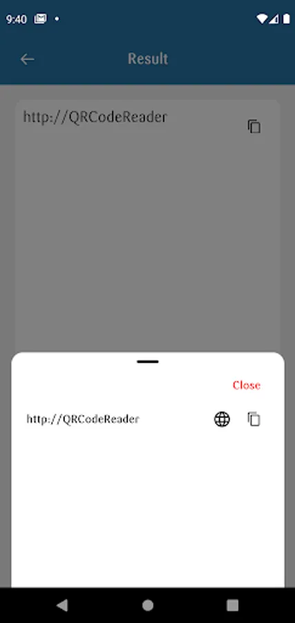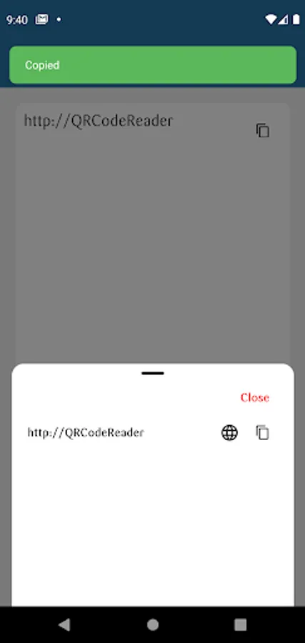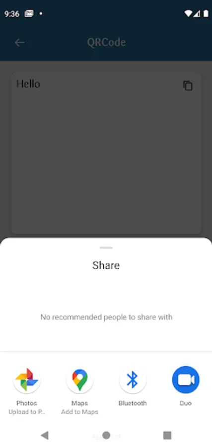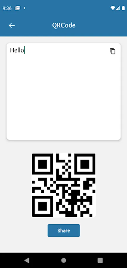 Other functionality of QR code reader / QR code scanner: Create QR, Scan QR from image, Scan QR from Gallery, Share your contact info via QR, share images to scan from other apps, generate QR codes from clipboard content.
