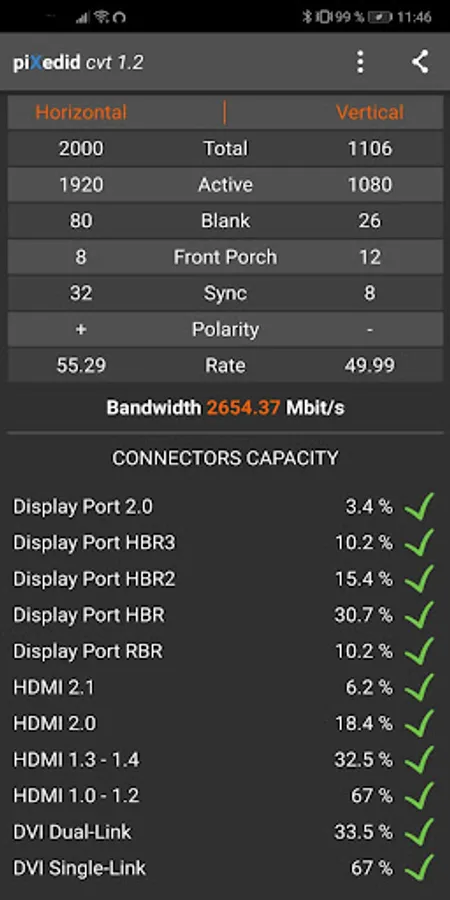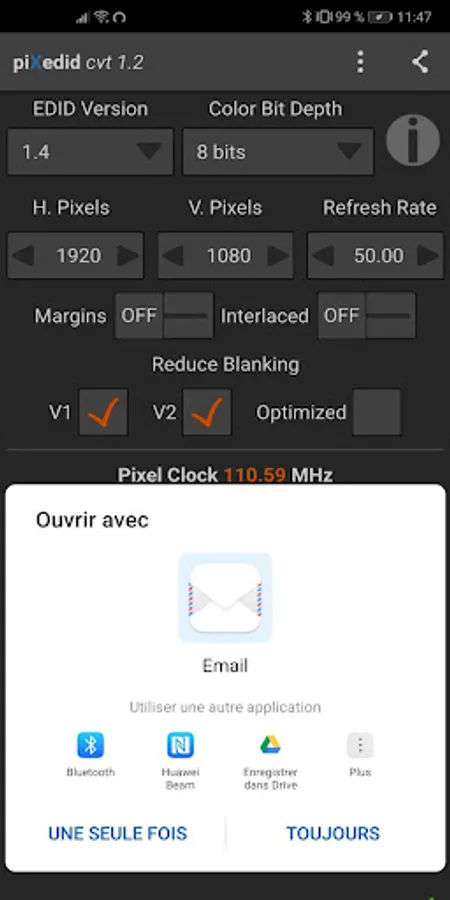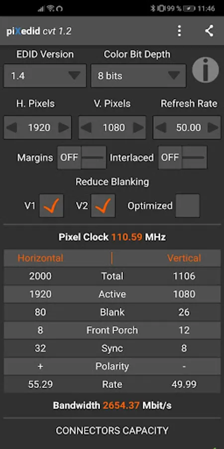 Easily generate an EDID file optimized for professional use using the integrated CVT 1.2 calculator.
