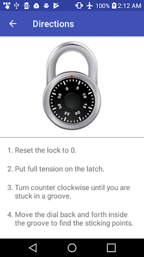 Disclaimer: This application is intended only for being used to unlock combination locks that the user owns. In no way does this application endorse or support unlocking any lock that is not owned by the user.