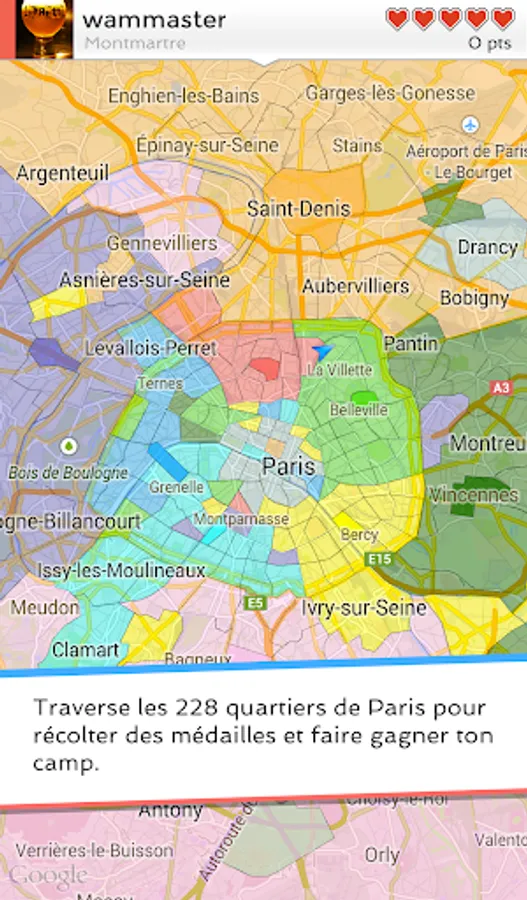 BattleParis is a game of capture the neighborhoods in Paris via geolocation, in the manner of a Risk or Battleship size.