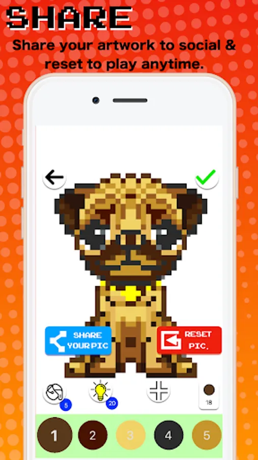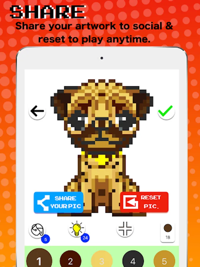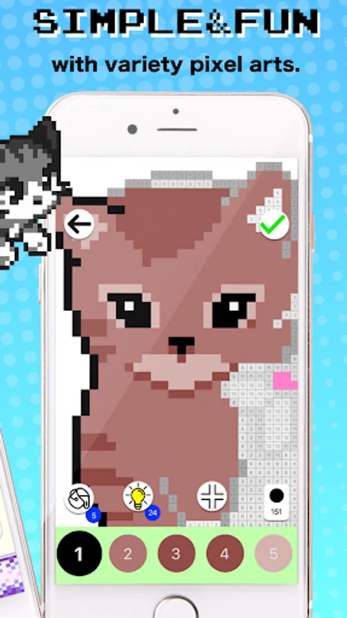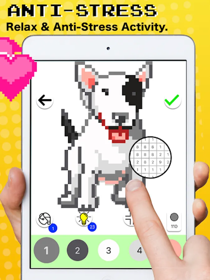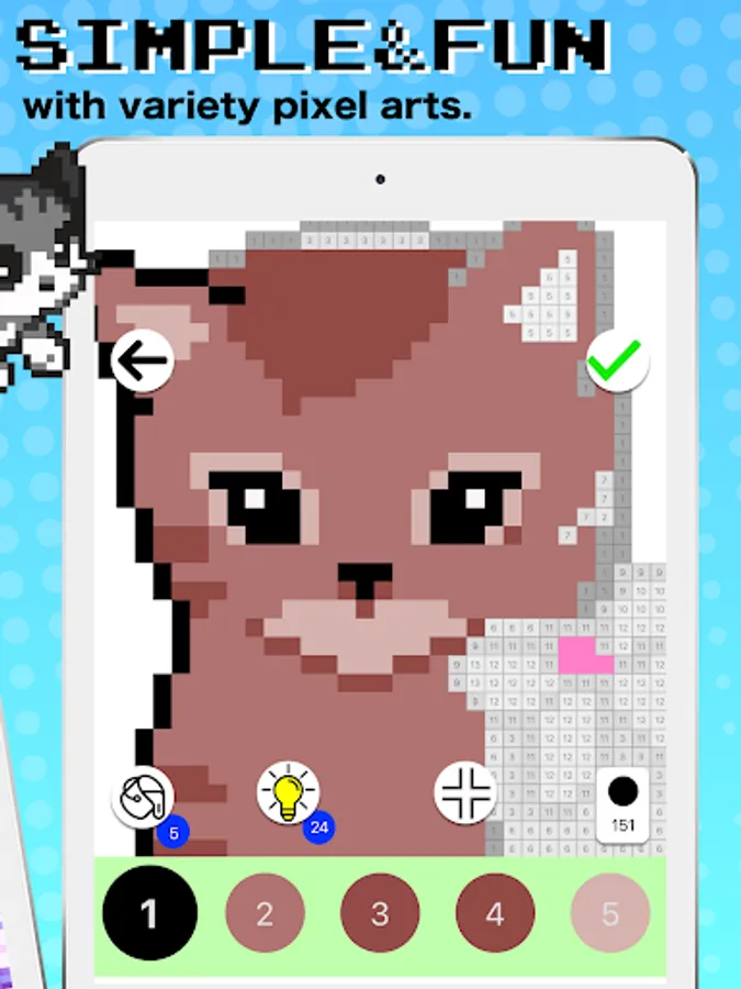 - Use hints if you can’t finish a picture, It will reveal pixel place for coloring by numbers.