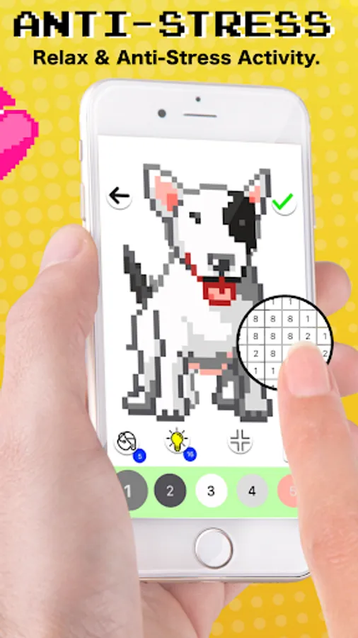 Simple and fun! Anxiety painting games challenge you to make completed your pixel art. It's true anti-stress activity, Relax & Enjoy!