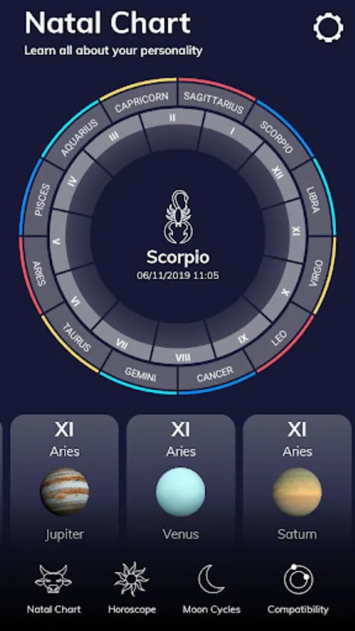 The app takes full advantage of a complex algorithm that uses, among other parameters, scientific data provided by NASA, resulting in a detailed and thorough personal natal chart.