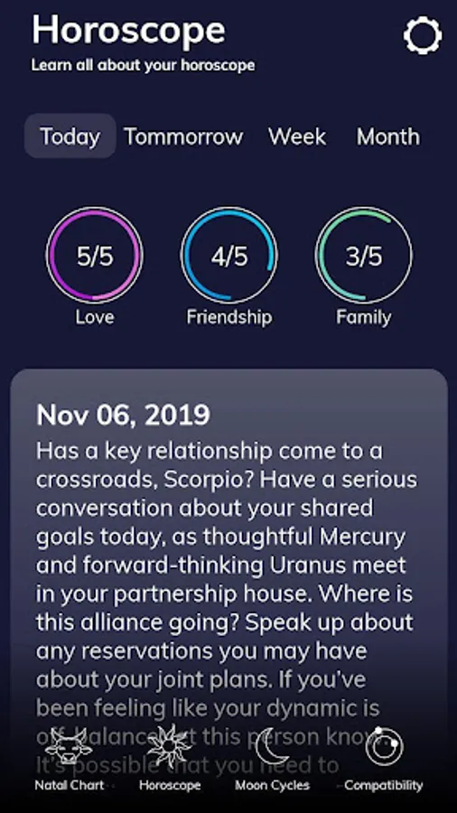 This app's predictions are based on scientific data provided by NASA and the sky map at the time of your birth, allowing the advanced algorithm to create an incredibly accurate horoscope that will reveal the most amazing things to you.