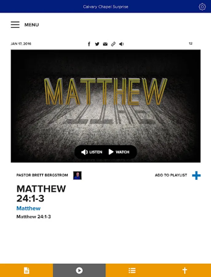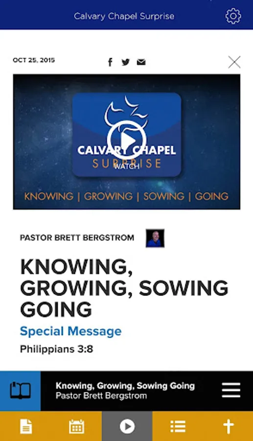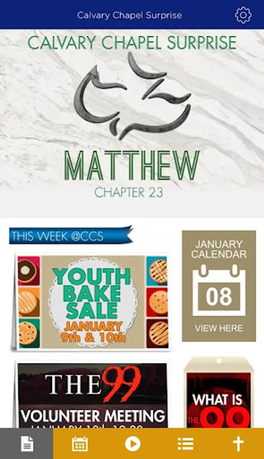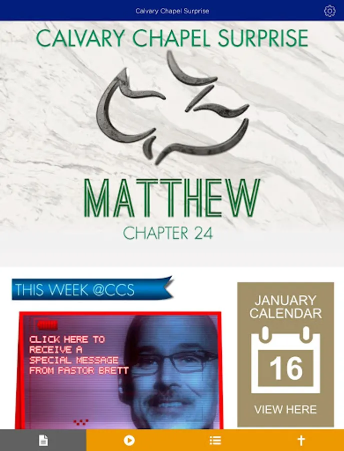 Stay connected to Calvary Chapel Surprise with our App. All of the services at Calvary Chapel center on teaching the Bible verse by verse, chapter by chapter, book by book. We value fellowship, worship and prayer. With our app you can: view our weekly bulletin, calendar, stream current and archived messages, and keep up to date with events and ministry news.