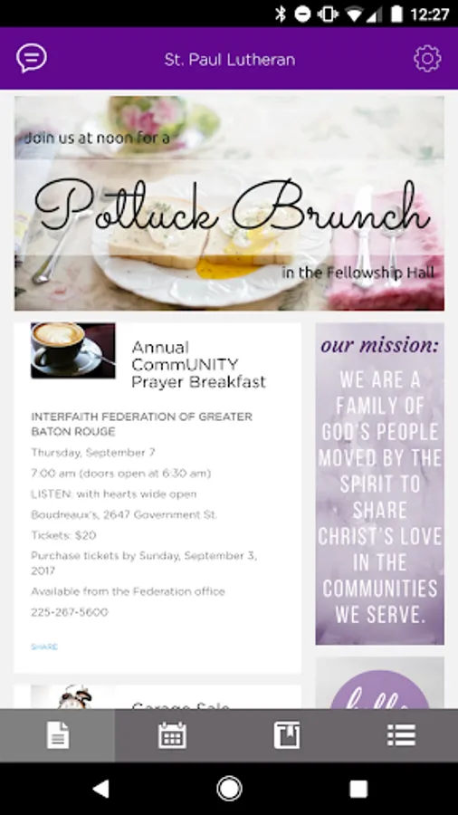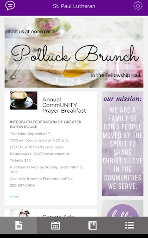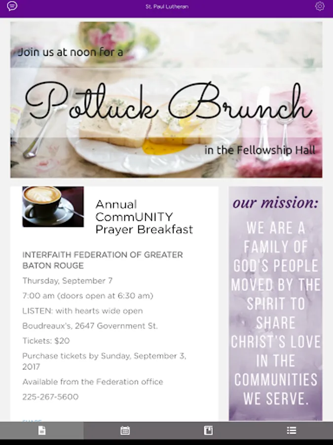 Stay connected with St. Paul Lutheran Church. Check out our weekly bulletin, view upcoming events, submit prayer requests, and get the latest announcements... all in the app!We are a family of God's people moved by the Spirit to share Christ's love in the communities we serve.