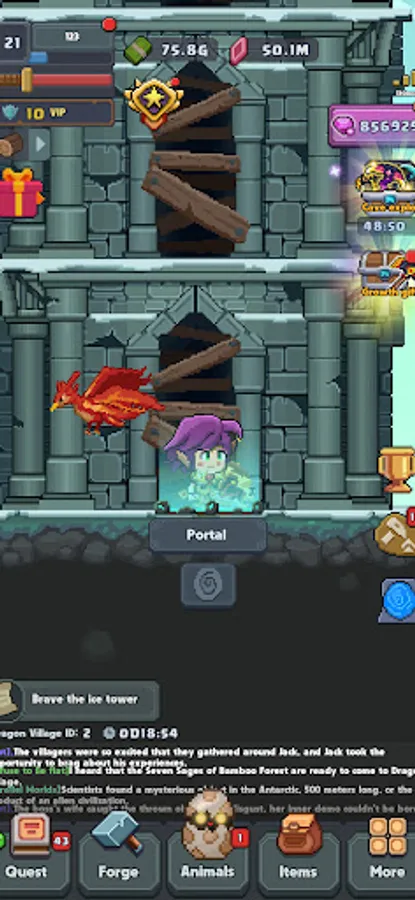 A small village has been invaded by monstrous creatures, waiting to be saved and rebuilt. Reincarnated in Stone Dragon Village, you save the elderly village chief and become the new chief. In the abandoned mines, animals (snails, ants, wild boars, etc.) work tirelessly for you to dig for treasures. Deep within the caves, there is a giant dragon with a world-weary temperament. You quickly learn blacksmithing and alchemy and miraculously activate an ancient teleportation circle. With your efforts, the village crisis is resolved, the ancient totem energy surges, and prosperity is on the horizon. You begin trading with goblins, engaging in commerce and stock trading at the post station. Things may be going too smoothly, so you decide to venture into the dungeon labyrinth. There, you encounter trolls and evil spirits, as well as various demons and monsters waiting for you. After escaping the labyrinth, you feel there's more to this place and seek out the old village chief.