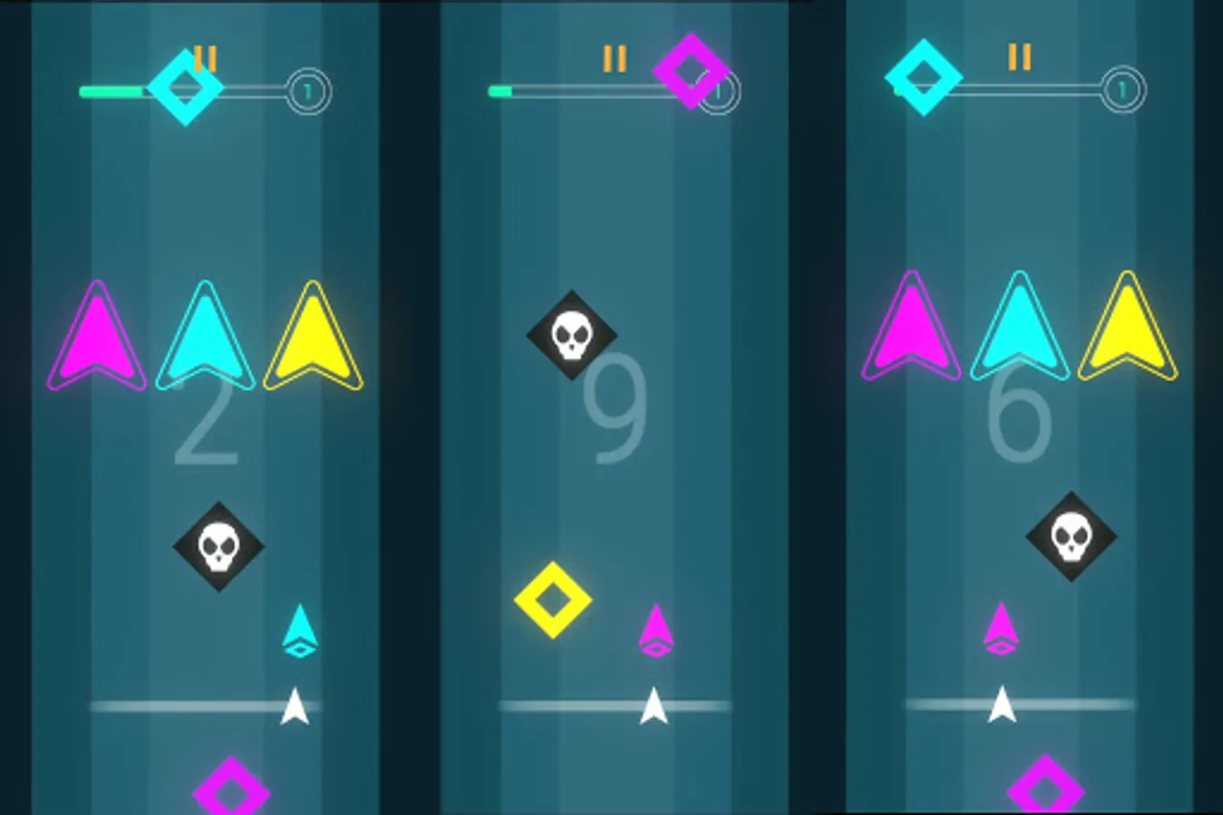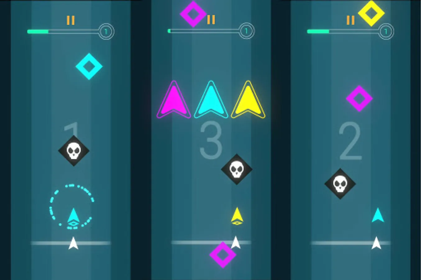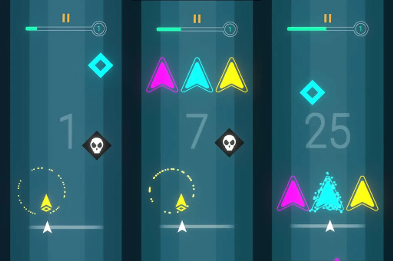 To destroy an incoming obstacle, just tackle it head on, BUT there is a twist. You can only destroy obstacles which have same color as you.