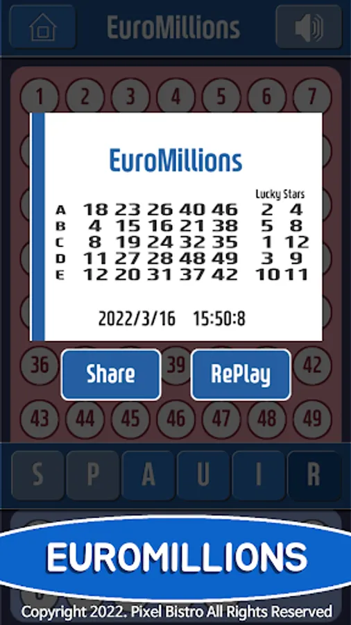EuroMillions : Pick five numbers (1-50) plus two Lucky Stars (1-12)