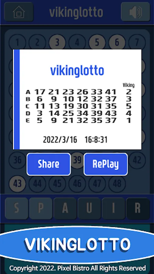 vikinglotto : Pick six numbers (1-48) plus one Viking Ball (1-5)
