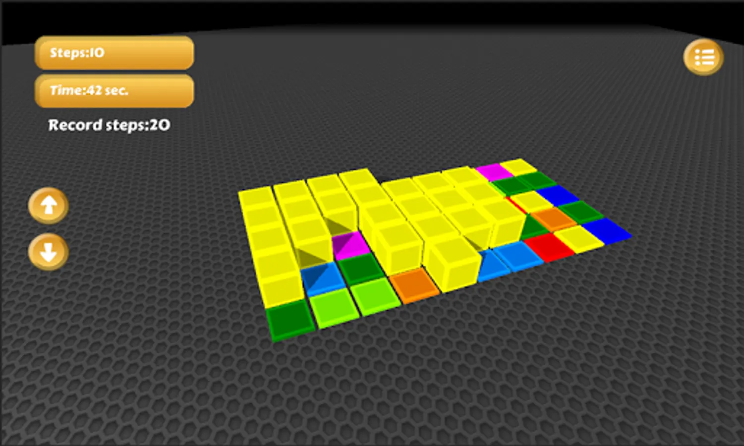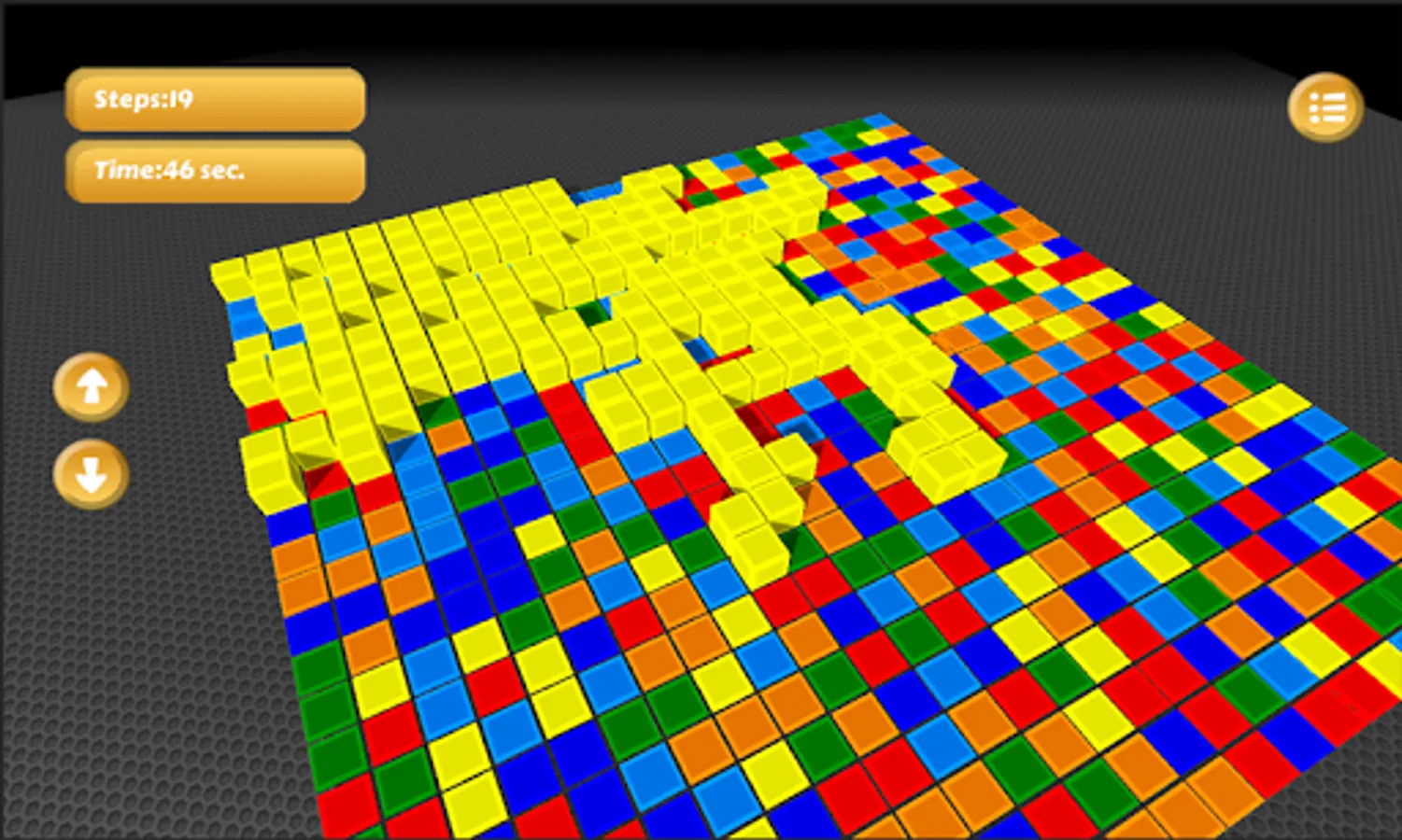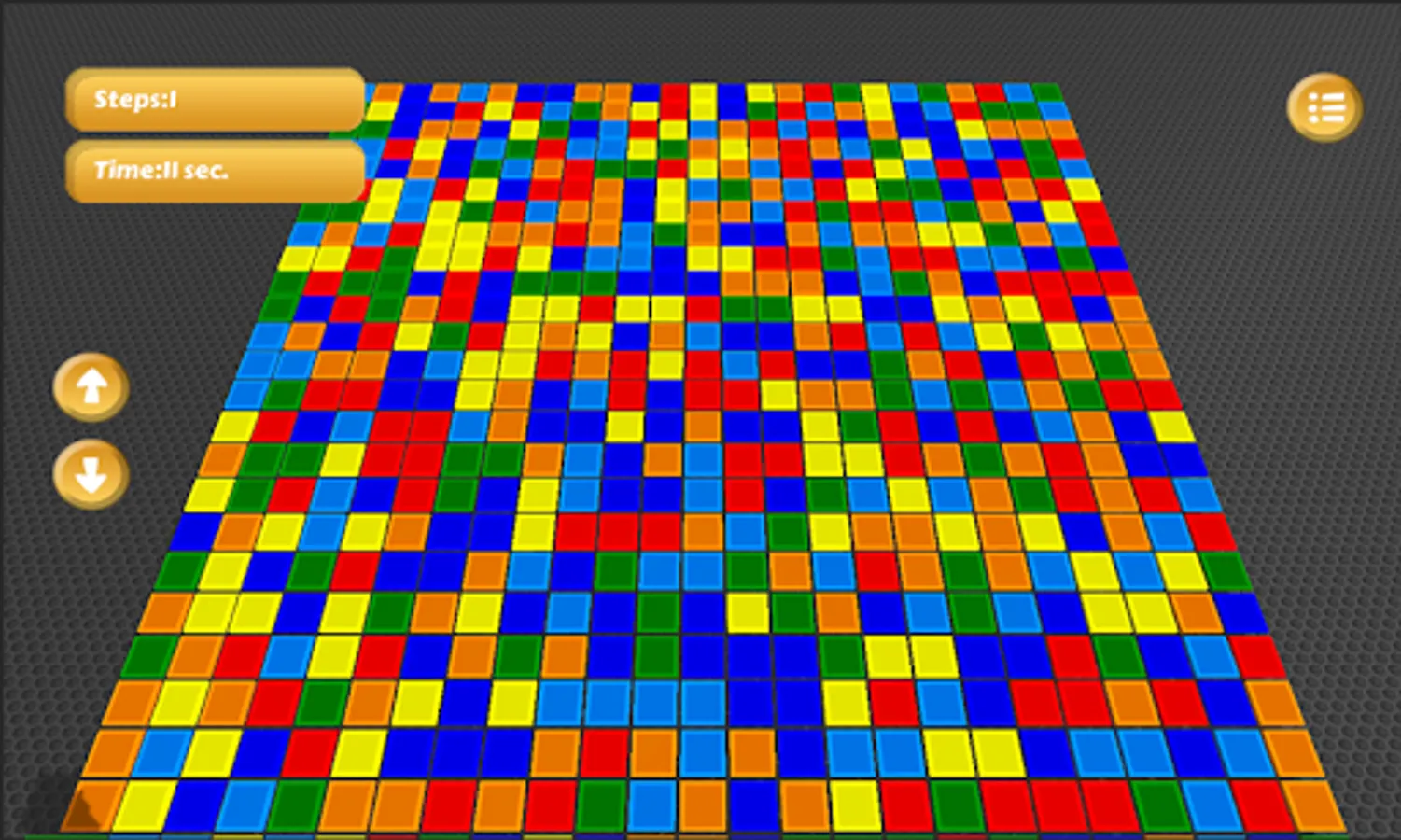 You will start from the left corner. If you touch the neighbour blocks, they will get the same colour and growing up. All of the blocks will change their colours to the new colour. The game aim to occupy the whole table with less steps. You can zoom and move away from the table. If you are dragging the background, the table will turn.